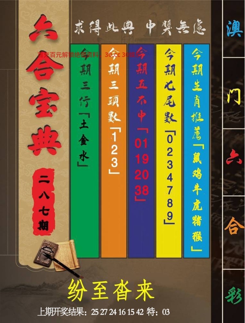 287期:七肖中特【猪虎龙牛鸡狗蛇】开:猴34